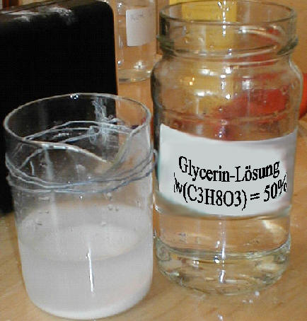 3.Schritt: Es werden 2 ml Glycerin - Lösung (w(C3H8O3) = 50%) abgemessen und in das Becherglas pipettiert:
