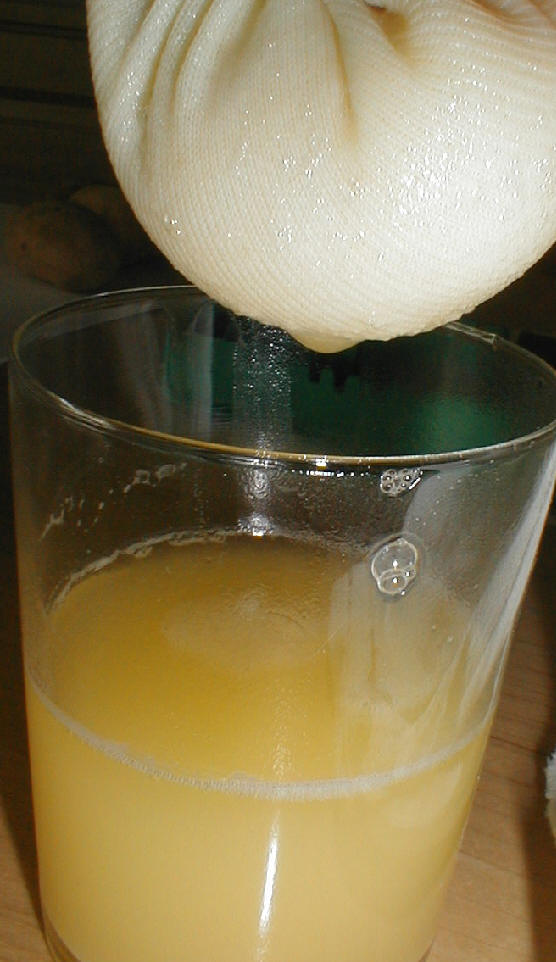 4.Schritt: Die entstandene Masse wird durch ein Tuch gedrückt oder fein gesiebt.