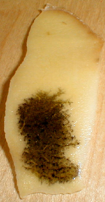 Diese schwarze Färbung ist ein positiver Nachweis für die in der Kartoffel enthaltene Stärke.